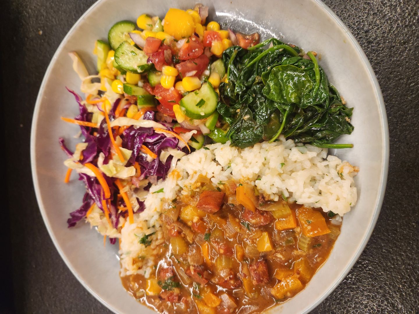 Gumbo qualifies as comfort food warming the body on a cold evening. This recipe was really difficult to nail down and has a lot of herbs and spices in it. Gumbo is extremely savory and relies a lot on salt and the carmelization of proteins and vegetables. Gumbo is not acidic nor sweet nor all that spicy, so this recipe took some trial and error trying to get the gumbo to taste near-ish to what we expect in a gumbo without the same level of sodium.