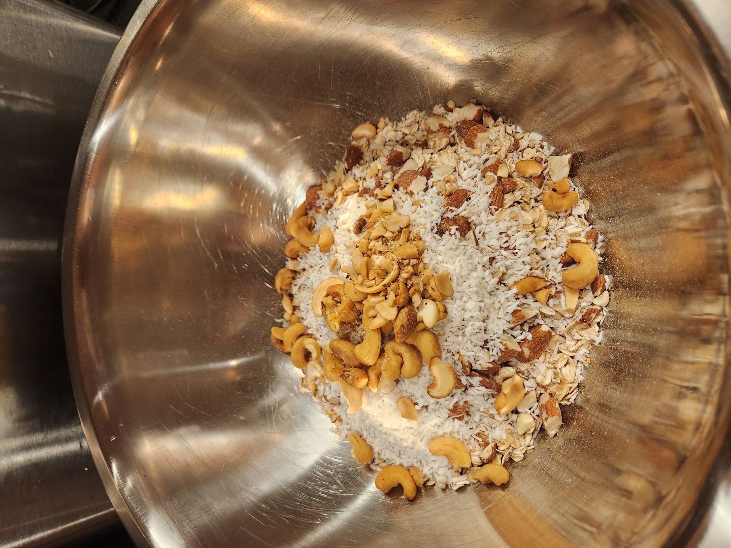Turn off the heat to the oven and leave the granola in the oven for an additional 10 minutes to crisp up. Remove from the oven and let cool. Store in an airtight container.