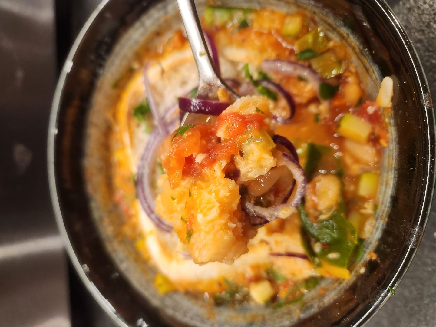 This soup tastes great everytime we make this. It utilizes leftover vegetables and day-old bread to make a worthy dinner. Even though the soup is still good without the toppings, it gives the soup that extra flavor.