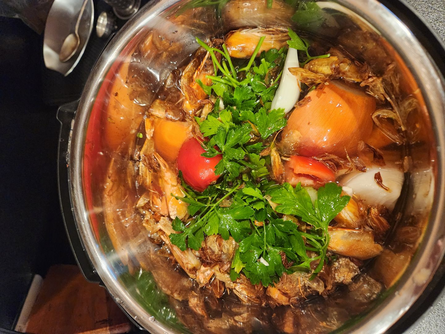 The shrimp heads and tails take a little extra of work to obtain. We came about obtaining these by buying the head-on shrimp at Costco to save money and ended up with a bunch of excess heads and tails when deveining and deshelling the shrimp. Perfect fo seafood dishes instead of using chicken broth.